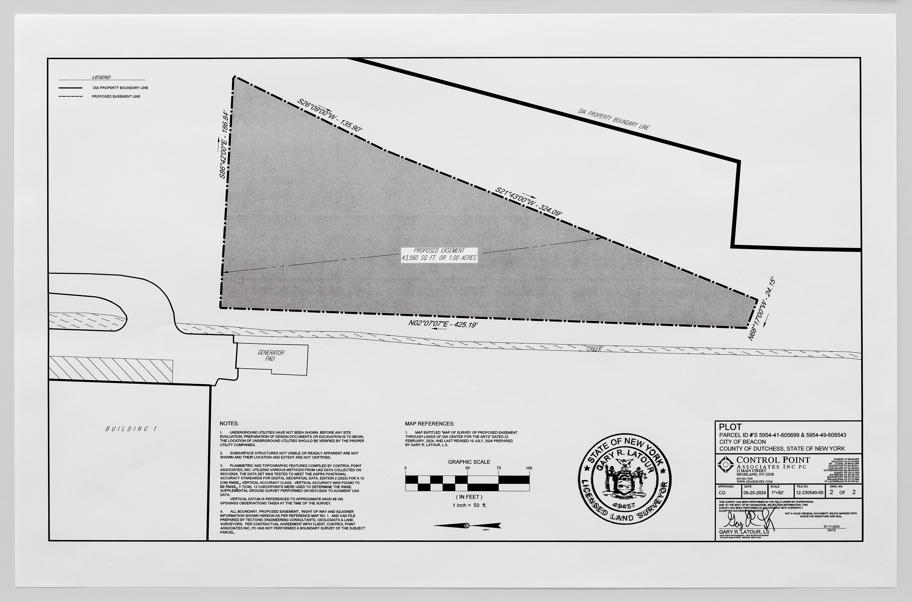 The easement between Dia Art Foundation and Plot Inc. conveys the rights to a one-acre section of the institution’s property to Plot Inc. for the purpose of protecting the graves of enslaved people who may have been buried there. This burial ground easement runs with the land and requires Dia and all future owners to relinquish the rights to use, disturb, or develop this section of the property.